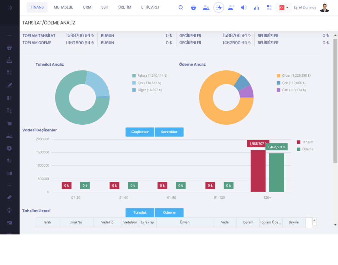 Sistem içinde tüm modüller için çok boyutlu analizler tanımlanabilir. Veri kaynağı olarak Tablo, View, Stored Procedure ve OLAP küplerini kullanabilir. Tanımlanan analizler Analiz kullanım penceresinde de tekrar görünüm değişikliği yapılarak farklı bir isimde farklı bir rapor olarak kaydedilebilir. Tablo görünümünün yanında grafik olarak görüntülenebilir. Görüntülenen Analiz Pdf, Excel, Html, Text gibi çeşitli formatlarda kaydedilebilir.