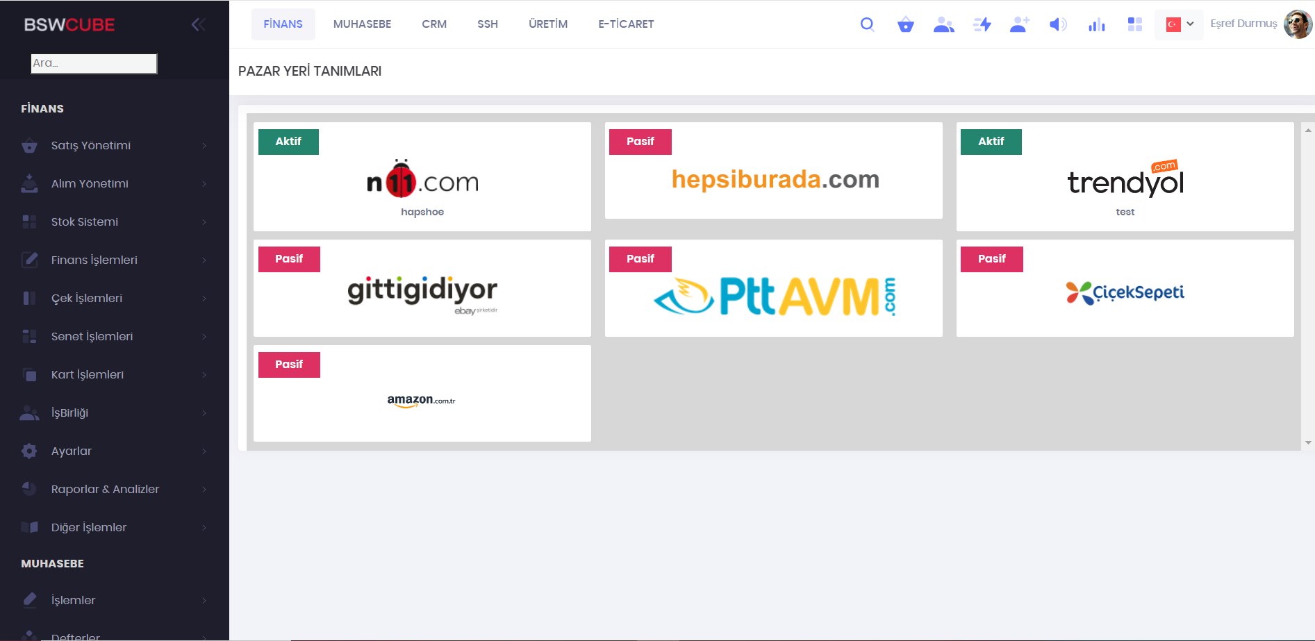 Pazaryerlerine ait api anahtarı, şifre ve diğer gerekli olan tanımların yapıldığı bölümdür.