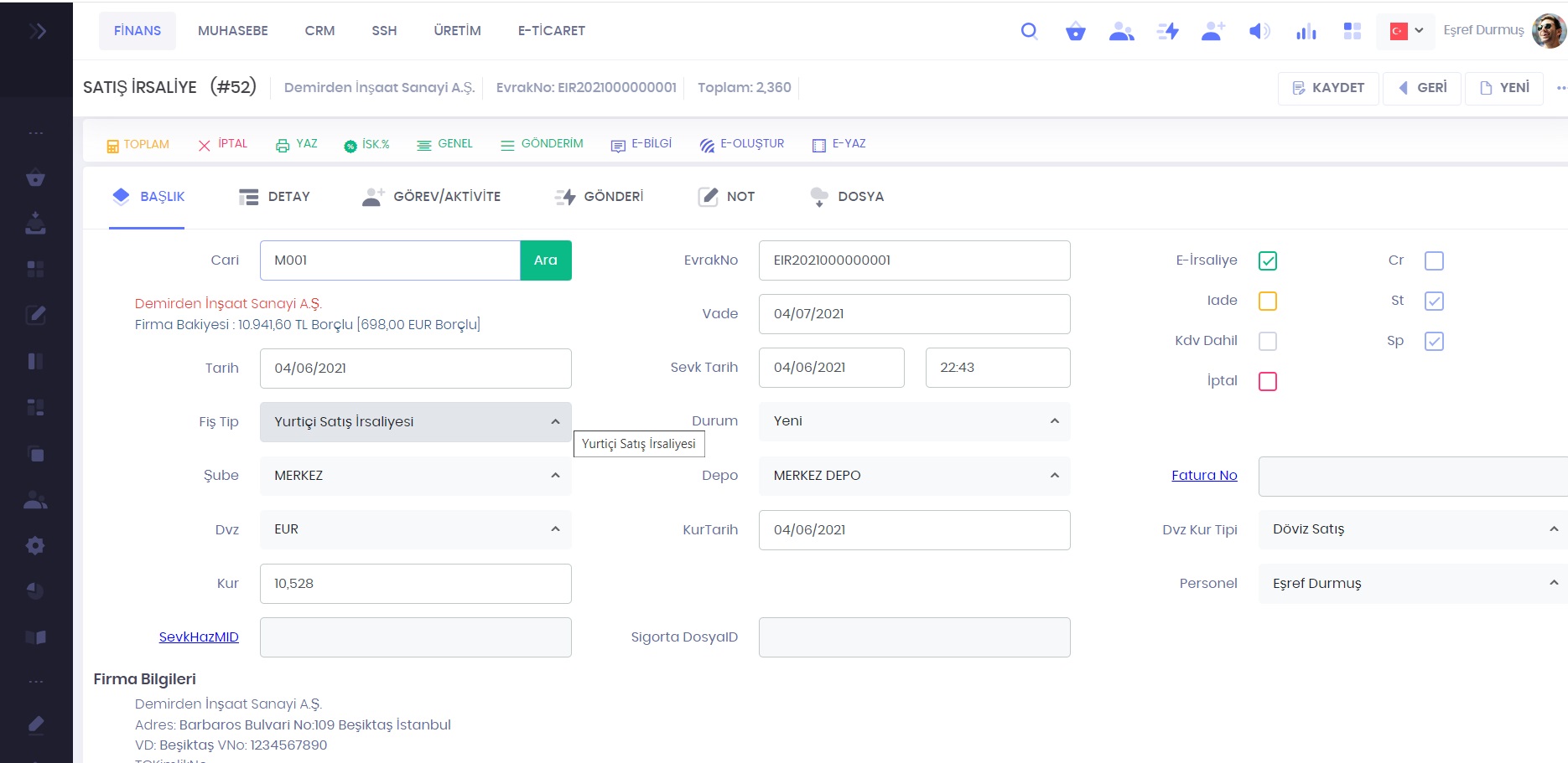 - E-Belge (Satış Fatura, Arşiv, İrsaliye)
